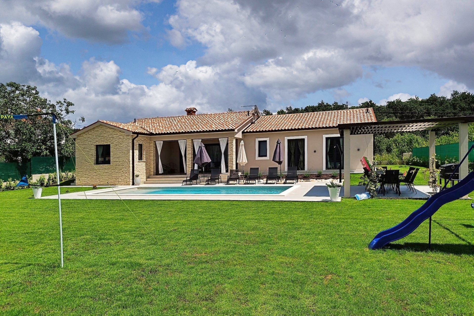 An der Ostküste Istriens, nur wenige Kilometer vom mittelalterlichen Städtchen Labin und den Stränden des Badeortes Rabac entfernt, erwartet Sie diese neue Villa für 8 Personen im kleinen Dorf Kapelica.Die modern gestylte Villa bietet auf einer Ebene 4 Schlafzimmer (3 x Doppelbett, 1 x zwei Einzelbetten), 3 Badezimmer und einen großzügigen Wohn-Essbereich. Im Außenbereich erwartet Sie eine überdachte Terrasse mit Grill und ein großer Garten mit Spielmöglichkeiten für jung und alt (Schaukel, Badminton- und Volleyballnetz, Fußballtore). Der 36m² große Pool mit Massagedüsen lädt zum Entspannen ein - Liegestühle (6 Stück) und Sonnenschirme sind natürlich vorhanden.