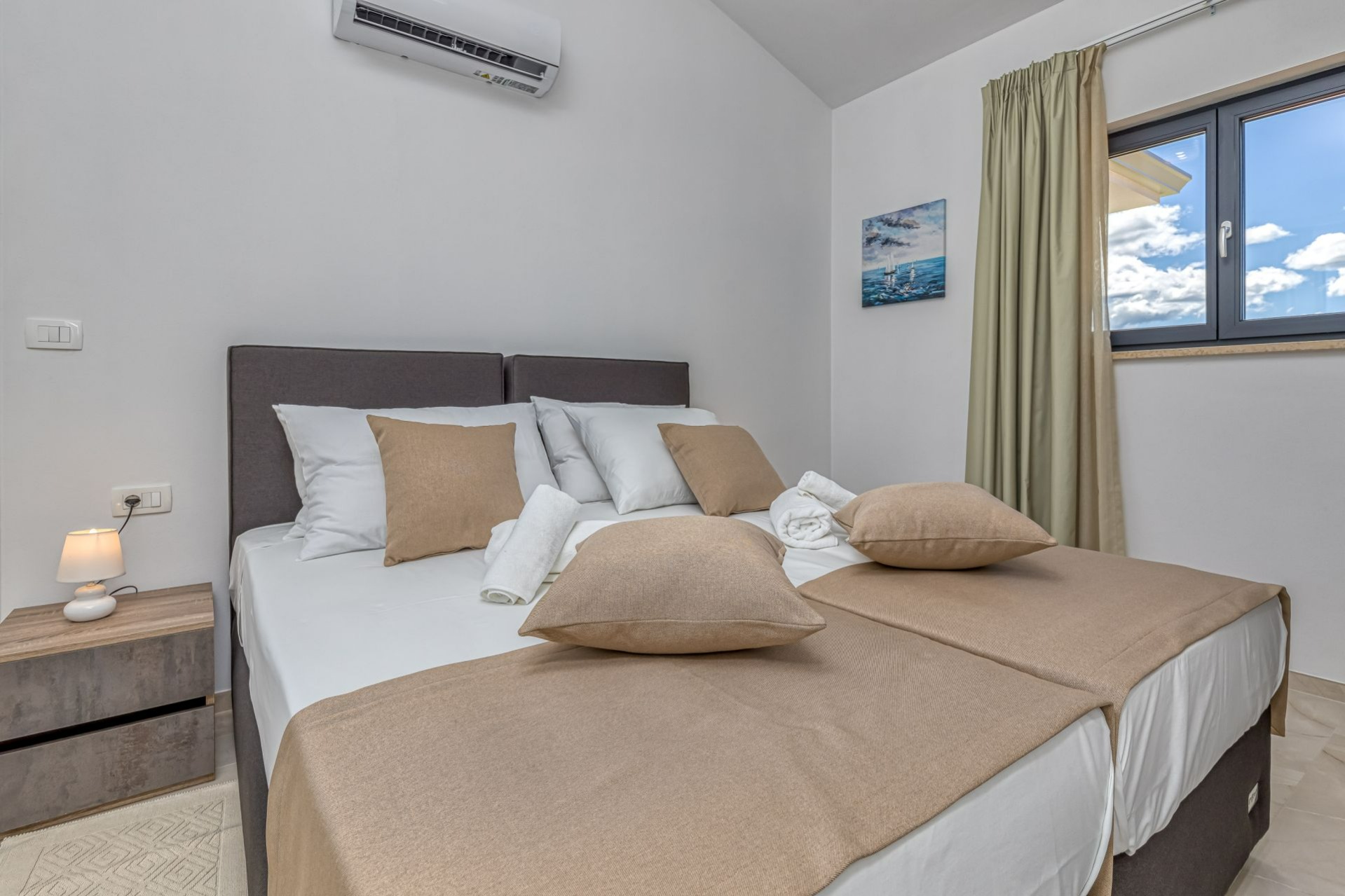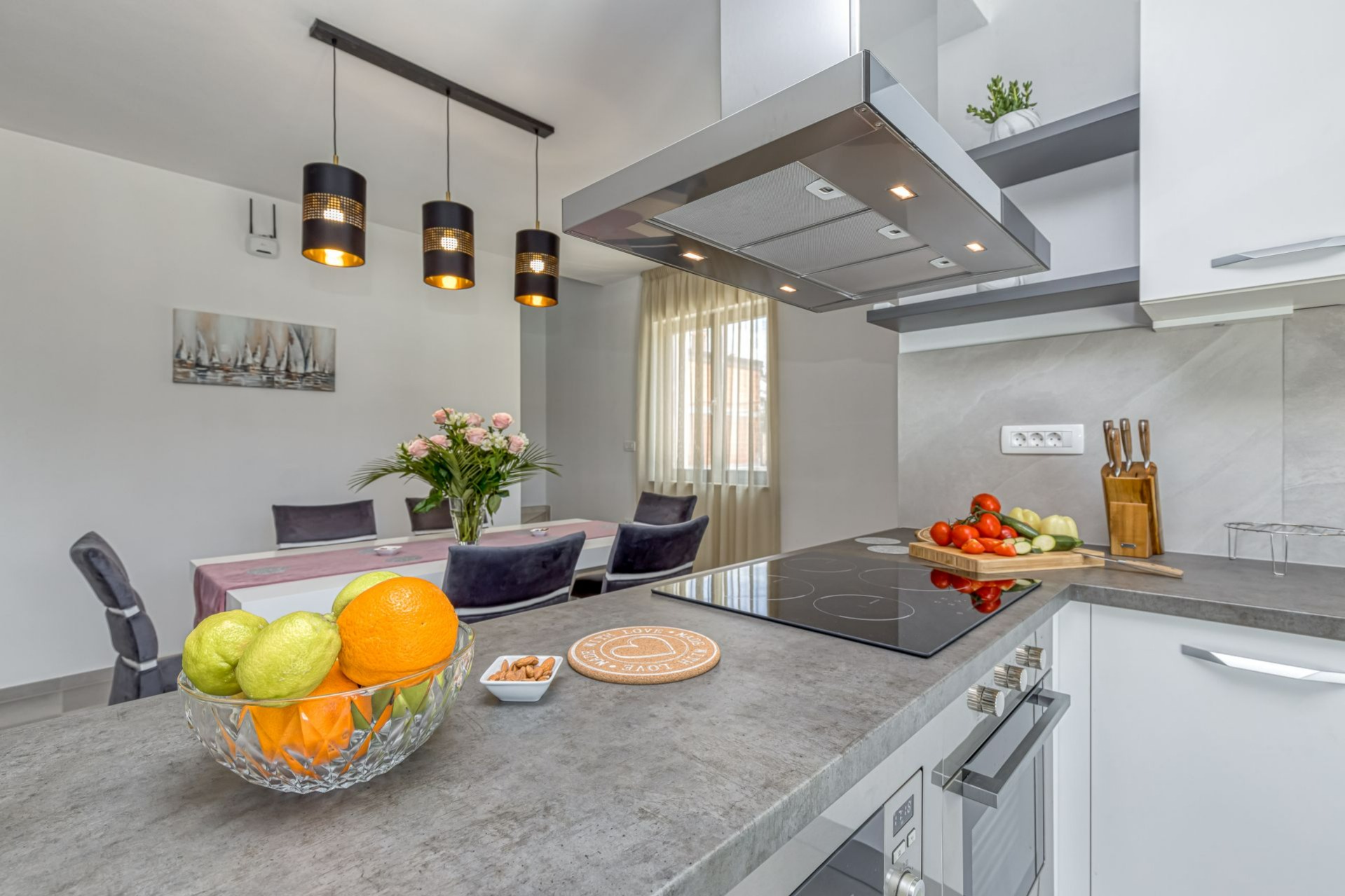 Das quirlige Städtchen Tar-Vabriga im Nordwesten Istriens ist umgeben von Natur pur mit Olivenhainen und Weinbergen. Es erwarten Sie gute Restaurants, Cafés, Bars und Einkaufsmöglichkeiten.Die bekannten Küstenstädte Poreč, mit der historischen Altstadt und dem UNESCO-Weltkulturerbe der Euphrasius-Basilika und Novigrad, bekannt für ein vielseitiges kulinarisches Angebot, sind nur 10 Minuten mit dem Auto entfernt. Auch die Trüffelregion rund um das historische Bergdorf Motovun und das Künstlerstädtchen Grožnjan sind schnell zu erreichen - die Badebucht Lanterna mit schönen, weitläufigen Stränden liegt quasi vor der Tür.
