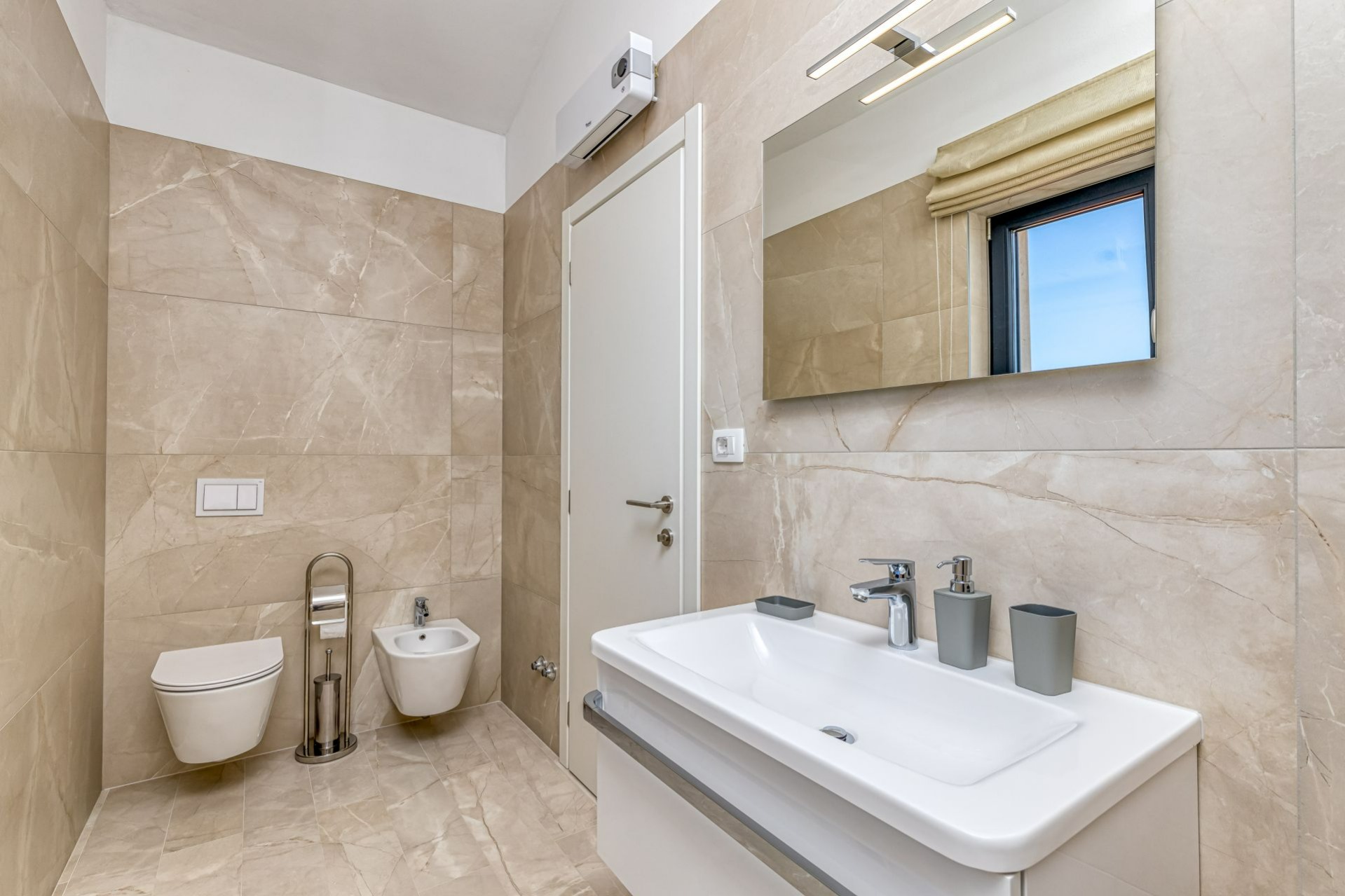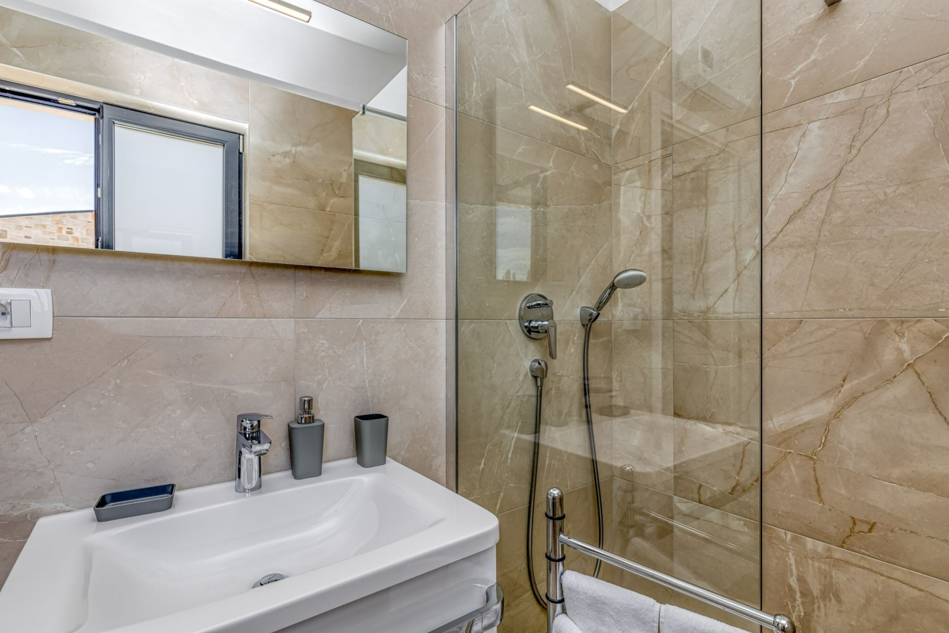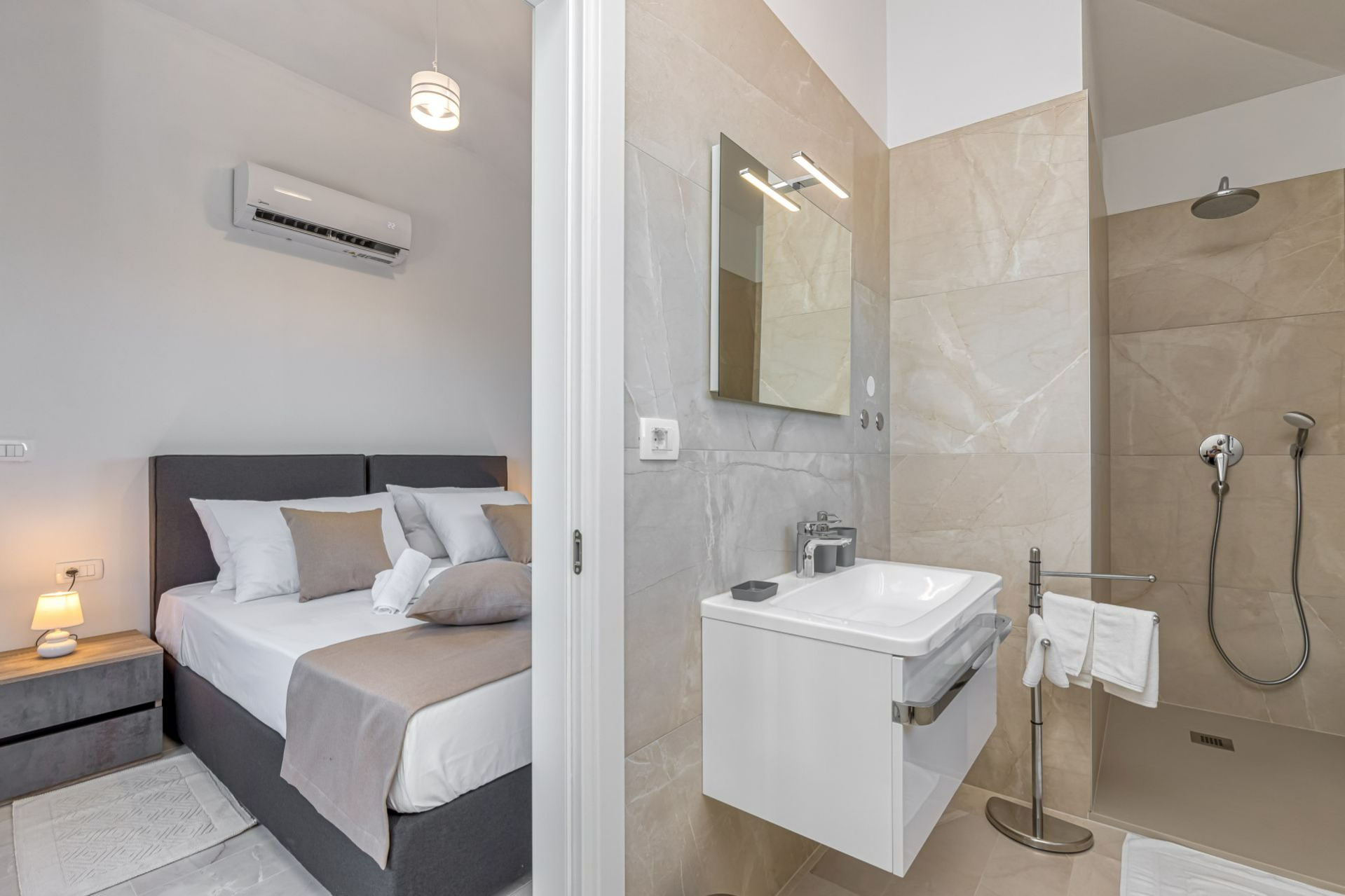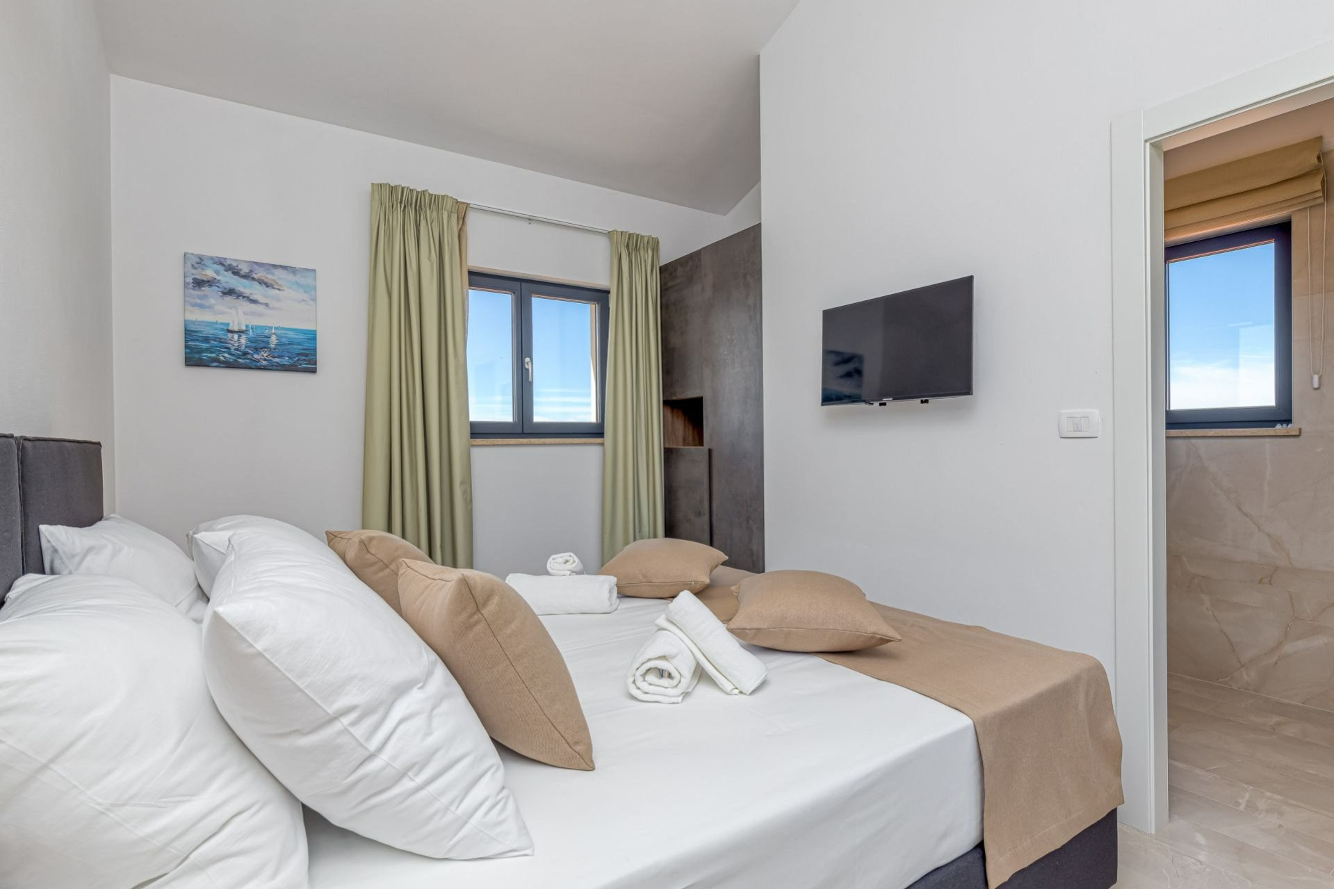 Zwei Master-Schlafzimmer mit komfortablen Doppelbetten sorgen für erholsame Nächte, ein Schlafzimmer mit zwei Einzelbetten ist ideal für Kinder oder Freunde. Jedes der drei Zimmer verfügt über ein eigenes Badezimmer en suite, sodass jeder Gast seine volle Privatsphäre genießen kann.