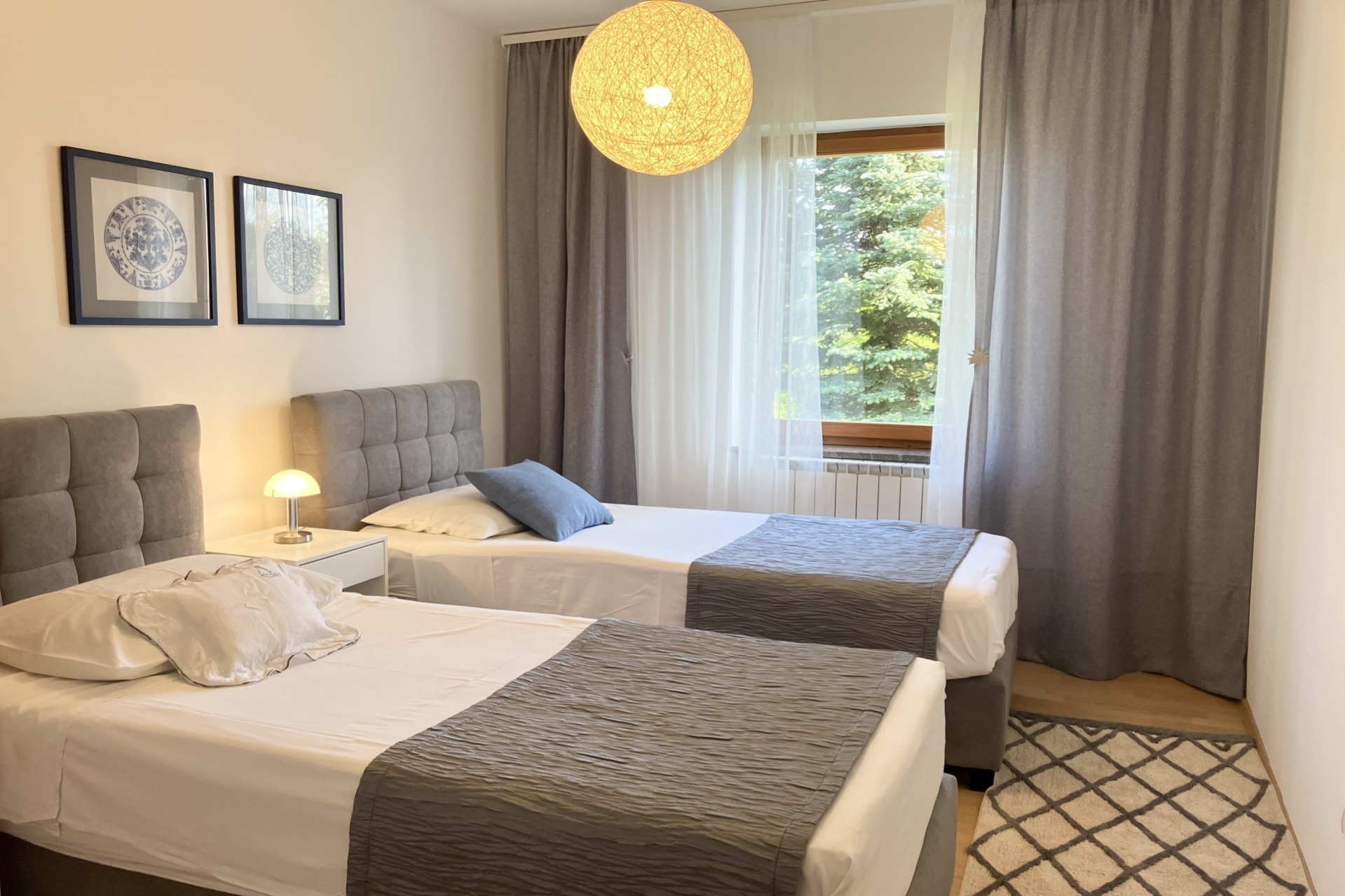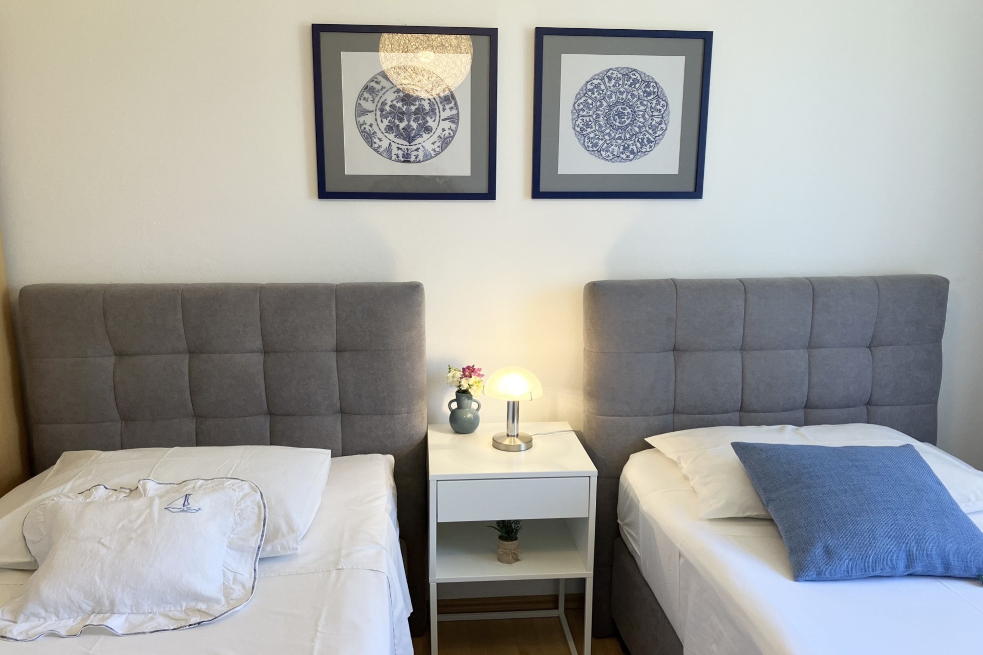 The house has 2 separate apartments, each with two bedrooms, a living room with sofa bed, an open kitchen and a bathroom with shower / WC. The equipment also includes a washing machine, satellite TV, WiFi and private parking on the property.