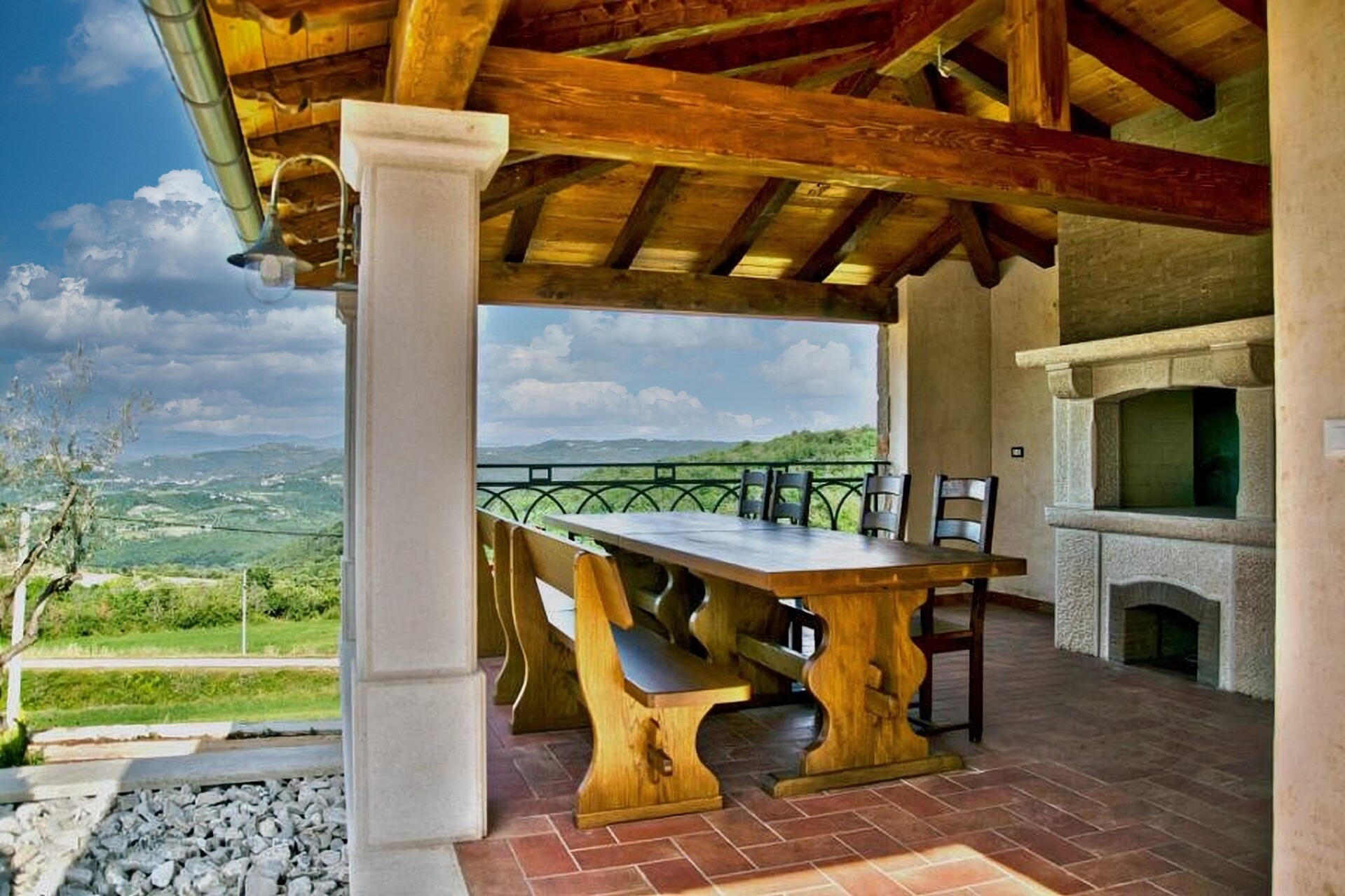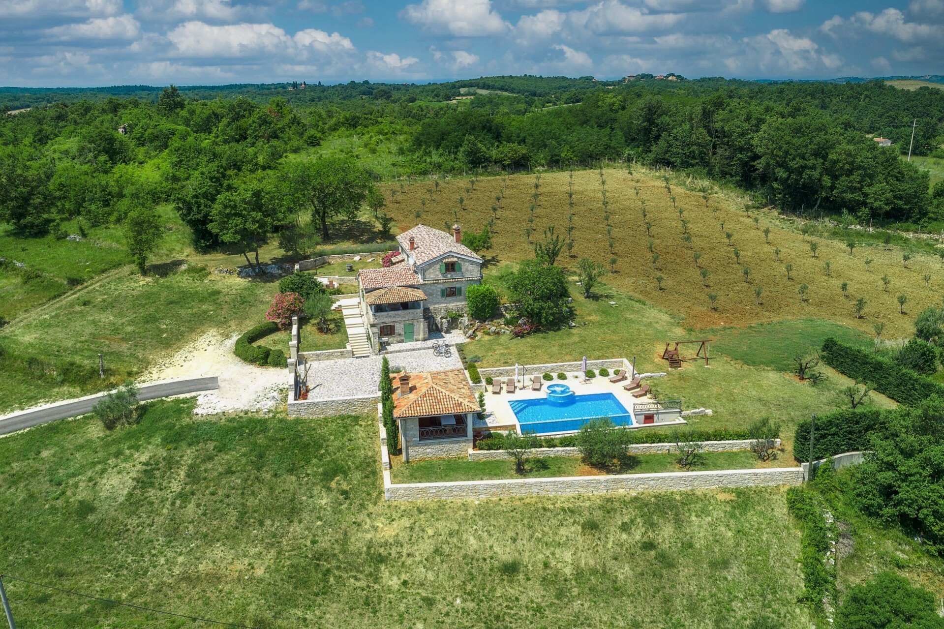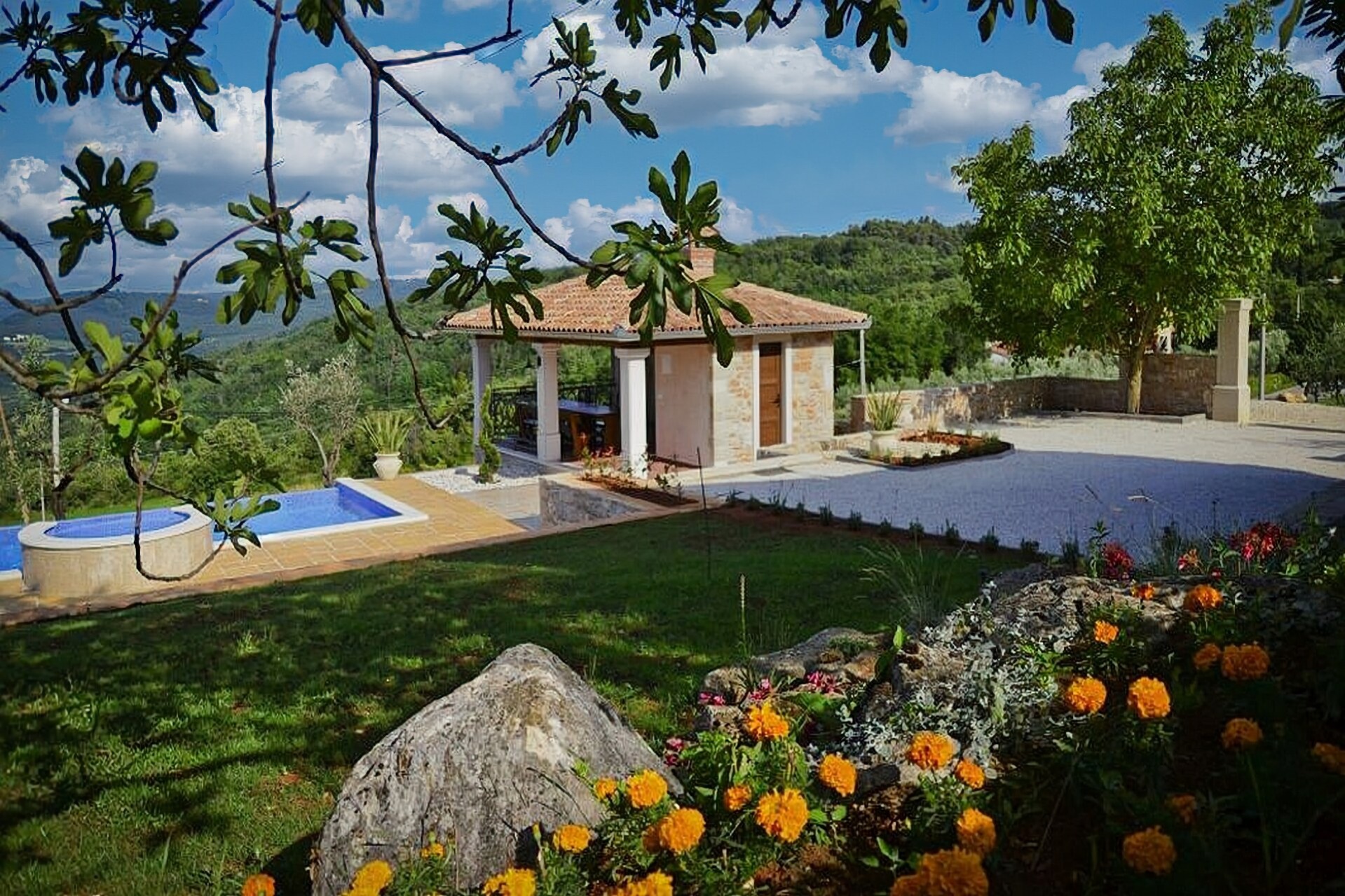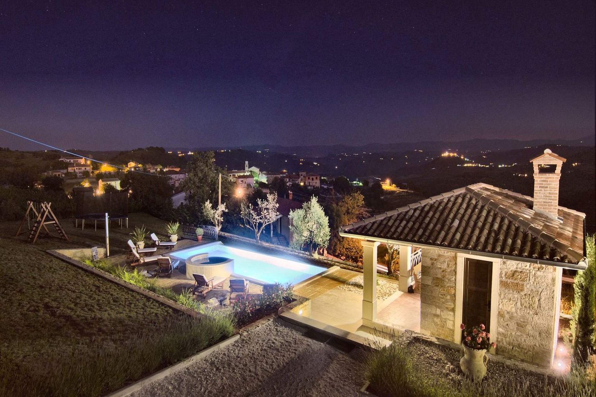 Villa Bošket is located near the small, tranquil village of Vižinada, high above the Mirna Valley. Nestled among vineyards, olive groves, meadows and forests, the villa is enthroned on a small hill. From here, you have a breathtaking view over the fertile, green Mirna Valley as far as the small mountain town of Motovun.