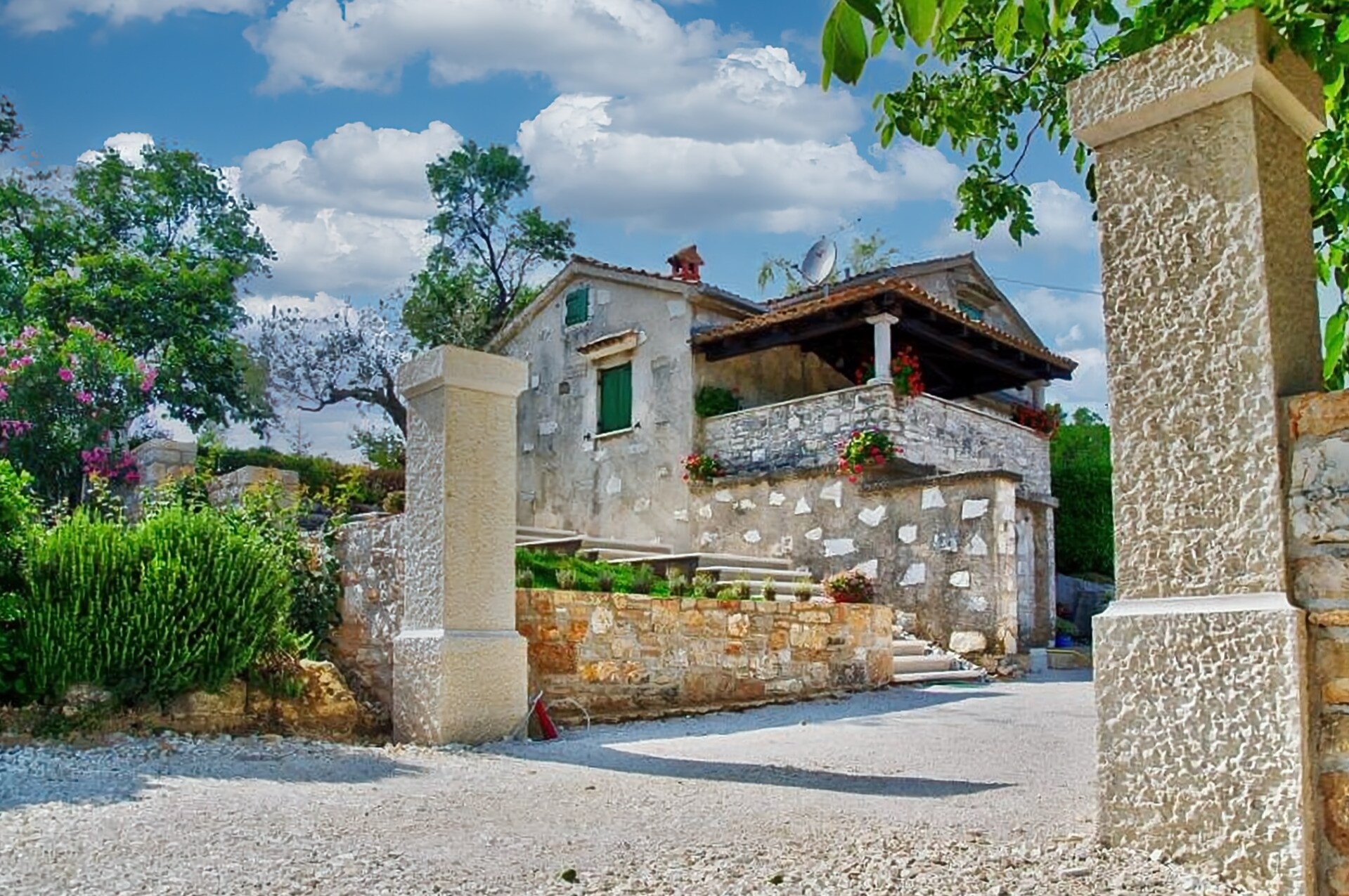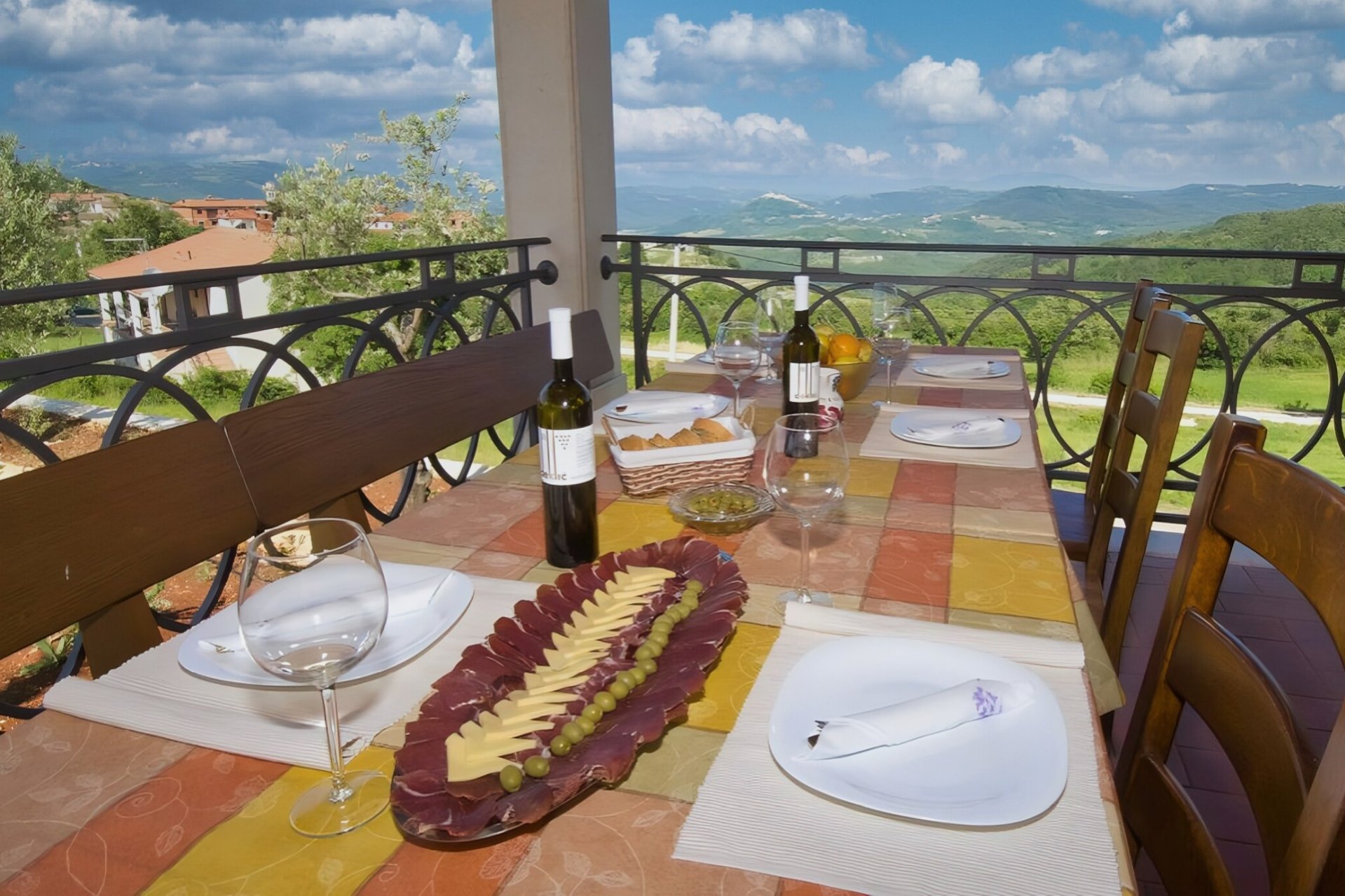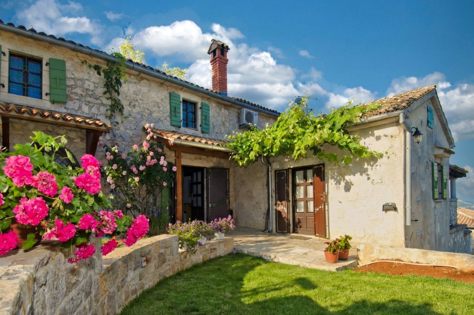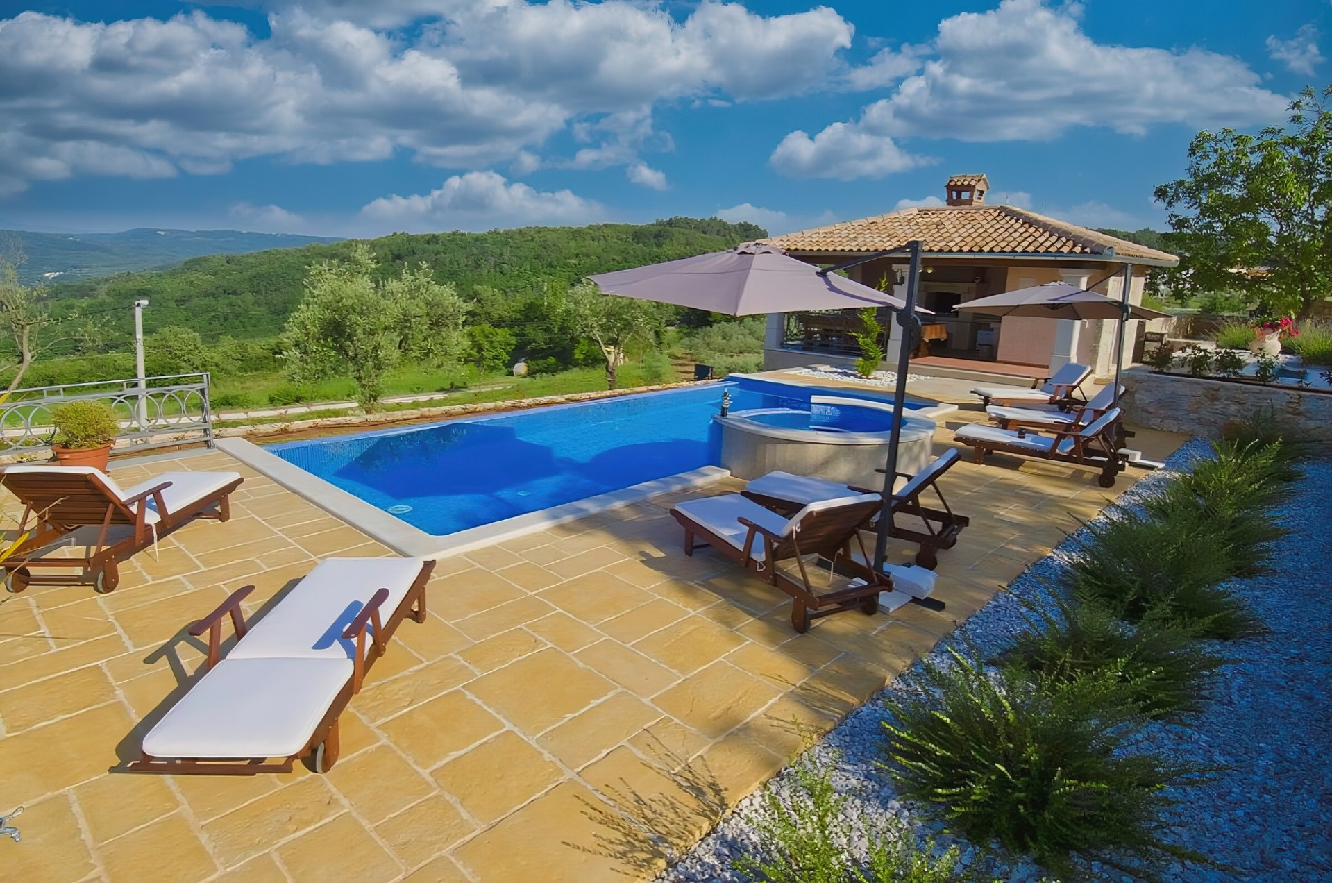 Villa Bošket is located near the small, tranquil village of Vižinada, high above the Mirna Valley. Nestled among vineyards, olive groves, meadows and forests, the villa is enthroned on a small hill. From here, you have a breathtaking view over the fertile, green Mirna Valley as far as the small mountain town of Motovun.